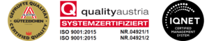 Wir verfügen seit unserer Gründung (EBE Solutions GmbH) über ein zertifiziertes Qualitätsmanagementsystem nach ISO 9001. Dieses gewährleistet den hohen Standard unserer Leistungen. Die Verleihung des Austria-Gütezeichens unterstreicht diesen Anspruch und weist uns als österreichischen Musterbetrieb aus.
